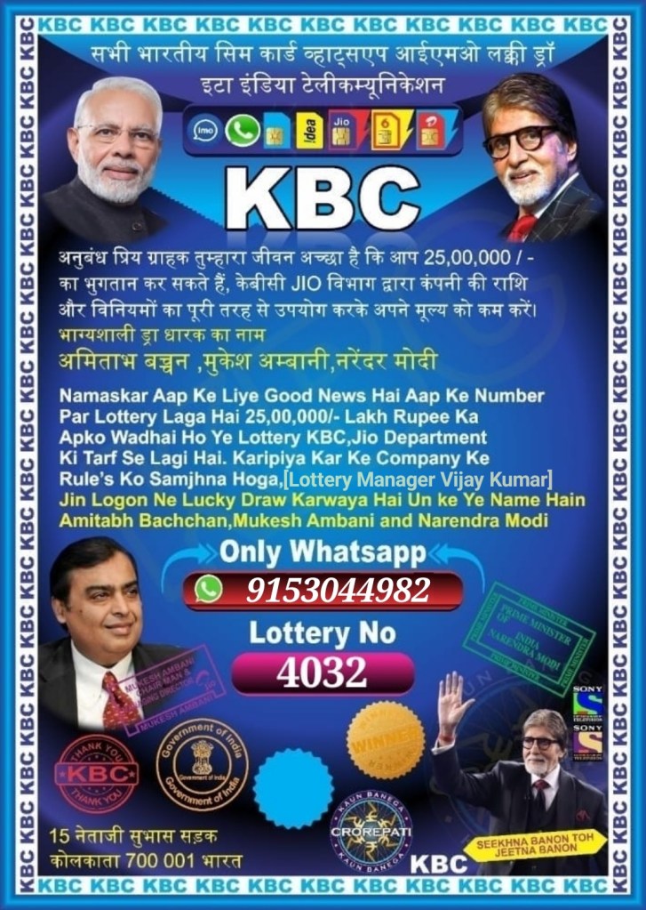 0ffering a gigantic sum as a lottery for our victors. KBC has a plan to annihilate the neediness from our dear country India. We are attempting to serve the individuals monetarily. KBC is a reality-based Lottery game show that doesn’t do any kind of fraud or scams.